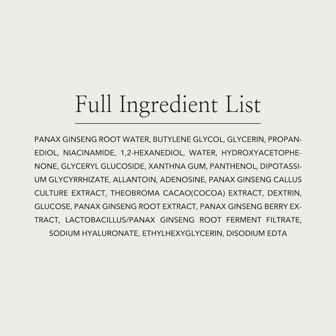 Moisture and lack of hydration are the basis of many skin problems. 80% Ginseng Root Water and Ginseng Complex fills the skin with moisture & hydration, yet still leaves a fresh feeling.Special complex of famous Korean beauty ingredients (Hanbang) such as Ginseng Root Juice, Ginseng Fruit Extract, Lactobacillus Ginseng Root Ferment Filtrate, Ginseng Cell Culture Extract, and Ginseng Root Extract nourishes the skin and recharges its vitality.2% Niacinamide and Adenosine duo helps to create a clearer skin appearance by providing tone evenness, sebum control, and fine line/wrinkle care. Panthenol, Sodium Hyaluronate and Allantoin trio provides moisture & hydration support and helps protect the skin barrier.