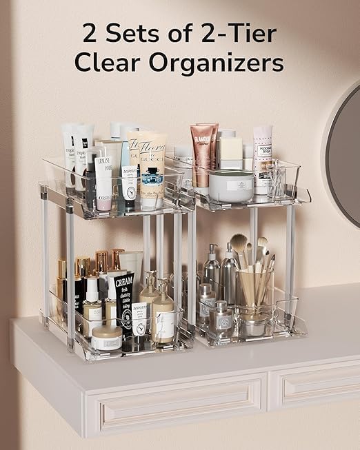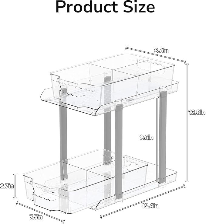 قم بتنظيم حمامك ومطبخك مع هذه المنظمات متعددة الاستخدامات المكونة من طبقتين. تحتوي كل مجموعة على وحدتين قابلتين للتكديس مع 8 فواصل قابلة للتعديل، مما يسمح لك بتخصيص التصميم لاحتياجات التخزين المناسبة لك. هذه المنظمات القابلة للسحب مثالية تحت الحوض أو في الخزانات أو على الأرفف، مما يحافظ على مساحتك خالية من الفوضى ويسهل الوصول إلى الأشياء. مصنوعة من مواد متينة، تم تصميم هذه المنظمات لتدوم طويلاً. بفضل تصميمها الأنيق والعصري، فإنها تمتزج بسلاسة مع أي ديكور. قم بزيادة مساحة التخزين لديك وتبسيط حياتك مع حلول التخزين المريحة والعملية هذه.