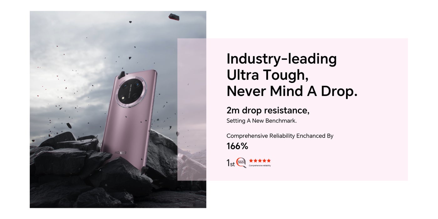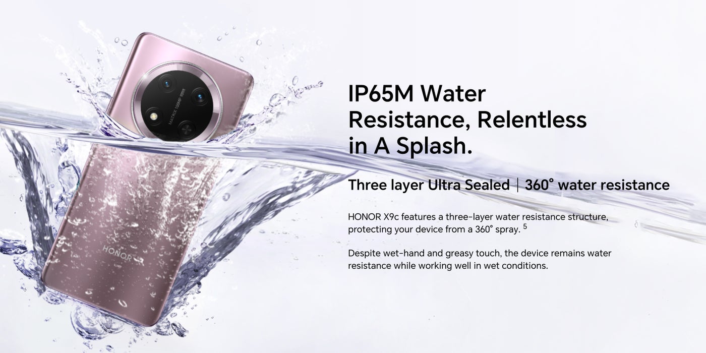 Designed for those who demand durability, performance, and style, the HONOR X9c redefines what it means to be resilient. Built with HONOR’s Ultra Bounce Anti-Drop technology 2.0, this phone is SGS-certified to withstand drops of up to 2 meters. Whether it’s a drop, splash, or high heat, the HONOR X9c stands strong, making it the ideal choice for rugged environments and adventurous spirits.