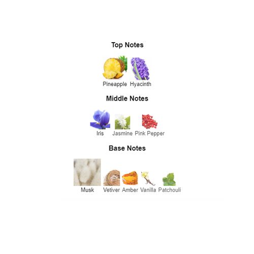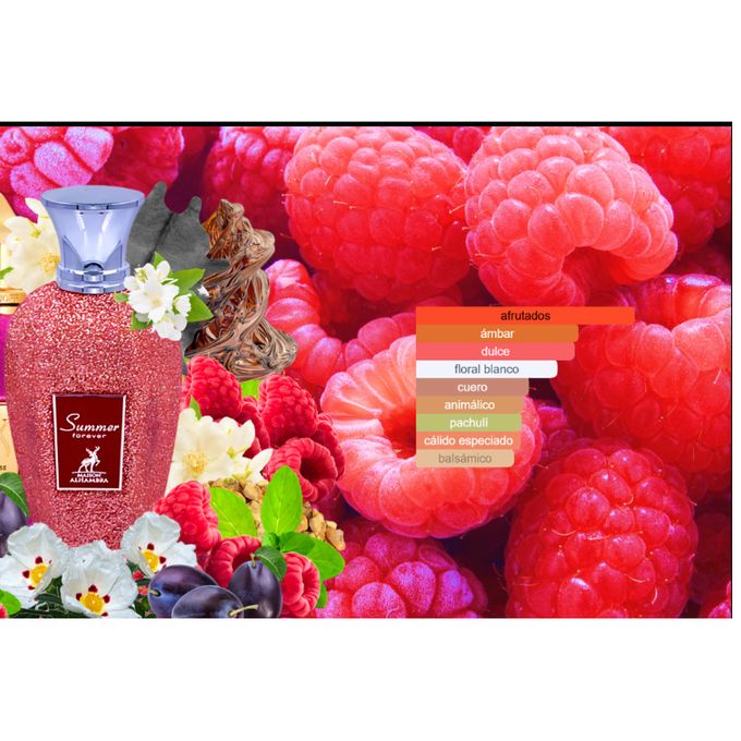 MAISON ALHAMBRA EDP Summer forever Top notes : Pineapple and Hyacinthmiddle notes : Iris, Jasmine and Pink Pepperbase notes : Musk, Vetiver, Amber, Vanilla and Patchouli.