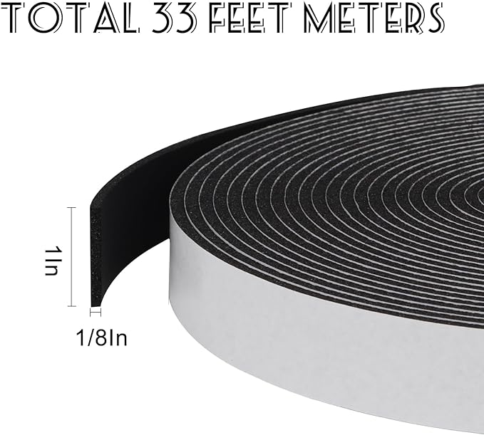 Storystore Foam Insulation Tape Self Adhesive,Weather Stripping for Doors and Window,Sound Proof Soundproofing Door Seal,Weatherstrip,Cooling,Air Conditioning Seal Strip (1In x 1/8In x 33Ft, Black)