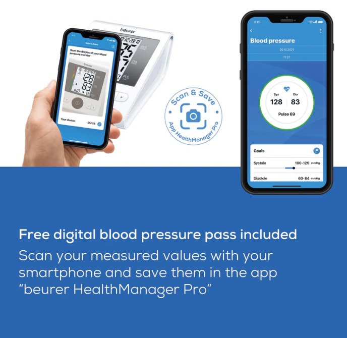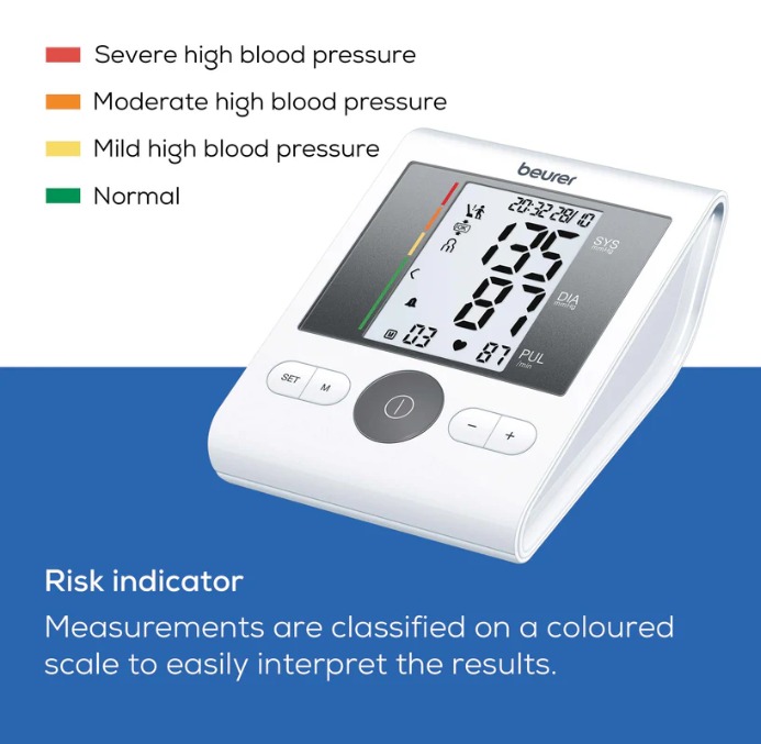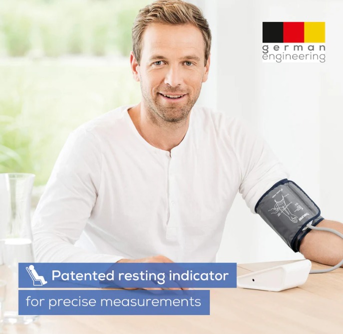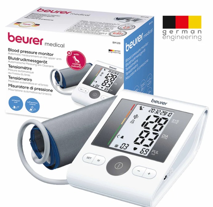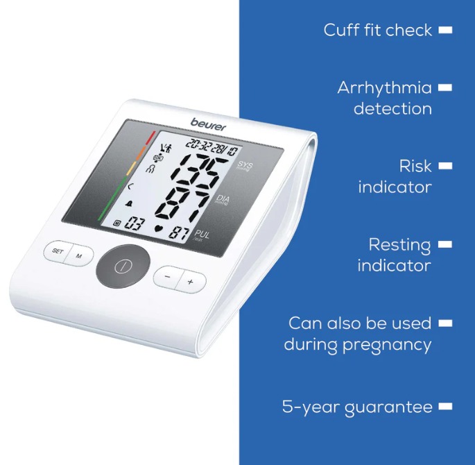 The Beurer BM 28 Upper Arm Blood Pressure Monitor has a universal cuff that is also suitable for larger upper arm circumferences up to 42 cm. The patented resting indicator shows you whether haemodynamic stability is achieved during the measurement and the measured values are therefore comparable. The integrated cuff fit check provides added peace of mind about the accuracy of the measured blood pressure values during every measurement. In addition, the measurement accuracy of the BM 28, including during pregnancy.