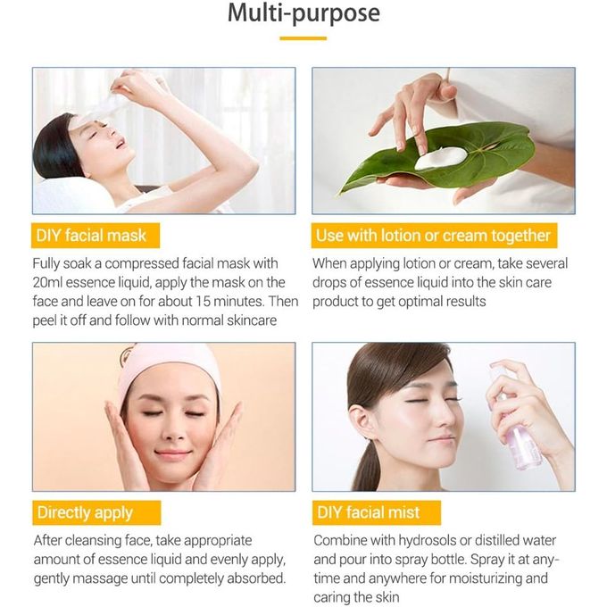 Skin lifting and tighteningBrightens skin and minimises dark spotsReduces fine lines and wrinklesBoosts collagen production and hydrationLeaves skin smooth, soft and hydrated