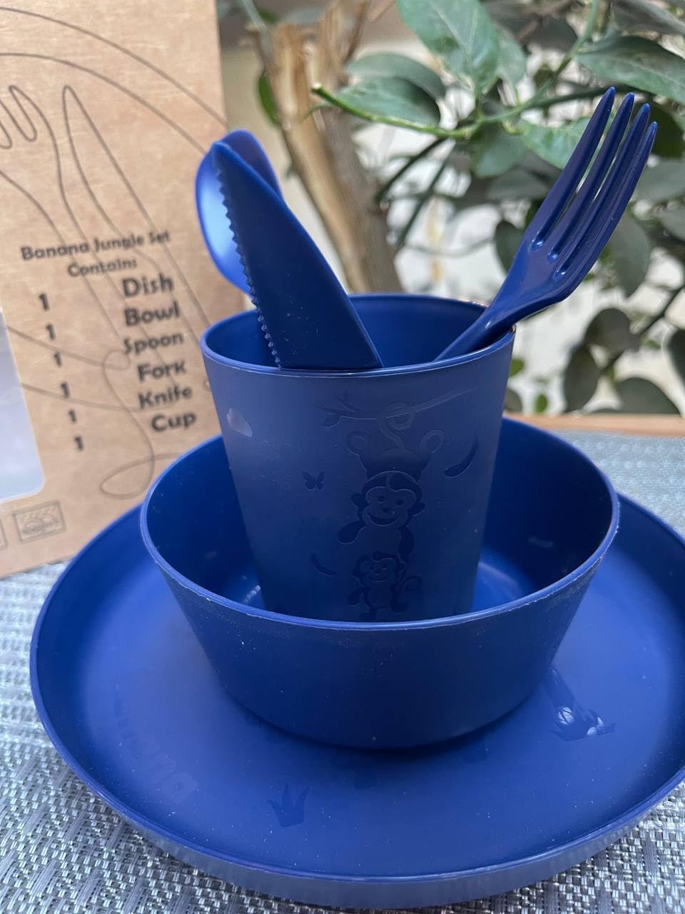 • مجموعة Banana jungle 6 pcs عبارة عن طبق و بولة و كوب و شوكة و معلقه و سكينة مصممين للأطفال ضد الكسر مصنوعة من خامات بيور PP 5 و مناسب للميكروويف و غسالات الأطباق متاح اللون بينك.