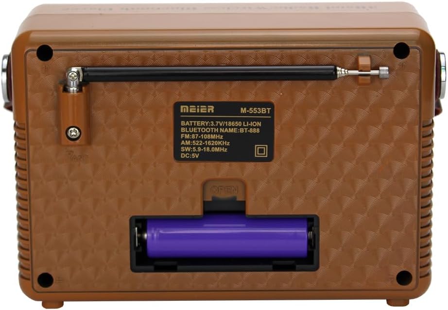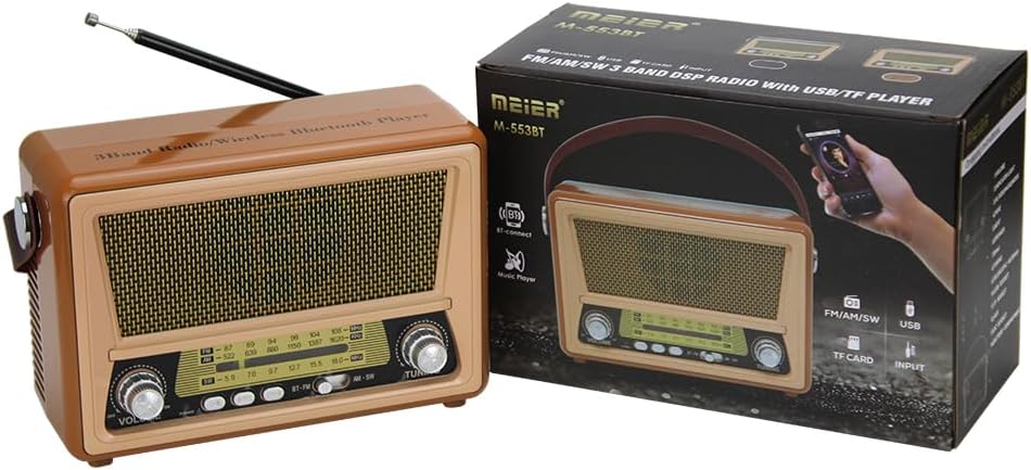 يجمع راديو M-553BT بين التصميم الكلاسيكي الأنيق والتقنيات الحديثة، حيث يدعم تشغيل موجات اف ام بجودة عالية مع خاصية الاتصال عبر البلوتوث لتشغيل الموسيقى مباشرة من هاتفك. كما يأتي مزودًا بمدخل USB وبطاقة TF لتشغيل ملفات الصوت بسهولة، بالإضافة إلى بطارية قابلة للشحن تتيح لك استخدامه في أي مكان.