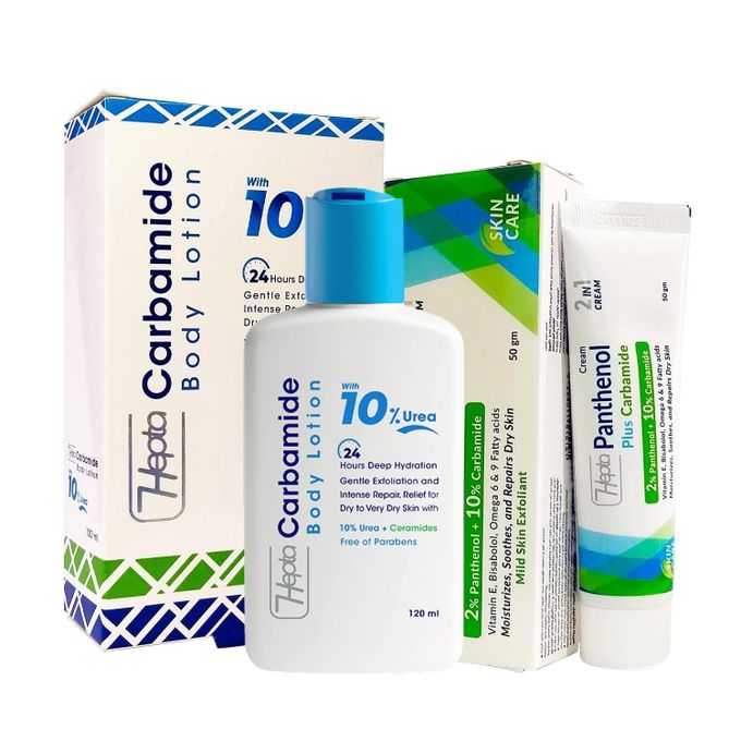 ترطيب عميق وتجديد للبشرة مع مجموعة هيبتا للترطيب. يجمع هذا الثنائي الفعال بين خصائص كريم بانثينول + كارباميد المُرممة، وتغذية لوشن هيبتا للجسم، وهو مثالي للاستخدام اليومي على البشرة الجافة والحساسة والخشنة.