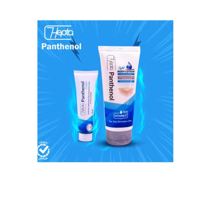 رطّب بشرتكِ، هدئيها، واحميها مع مجموعة هيبتا بانثينول - ثنائي مثالي للعناية اليومية بالبشرة. تتضمن هذه المجموعة كريمًا مغذيًا للوجه والجسم للمناطق الجافة والمتهيجة، ولوشن خفيف للجسم سريع الامتصاص، مثالي للاستخدام اليومي. بفضل تركيبته الغنية بالبانثينول، تساعد هذه التركيبة على استعادة حاجز البشرة، وتقليل الجفاف، وترك بشرتكِ ناعمة وملساء.
