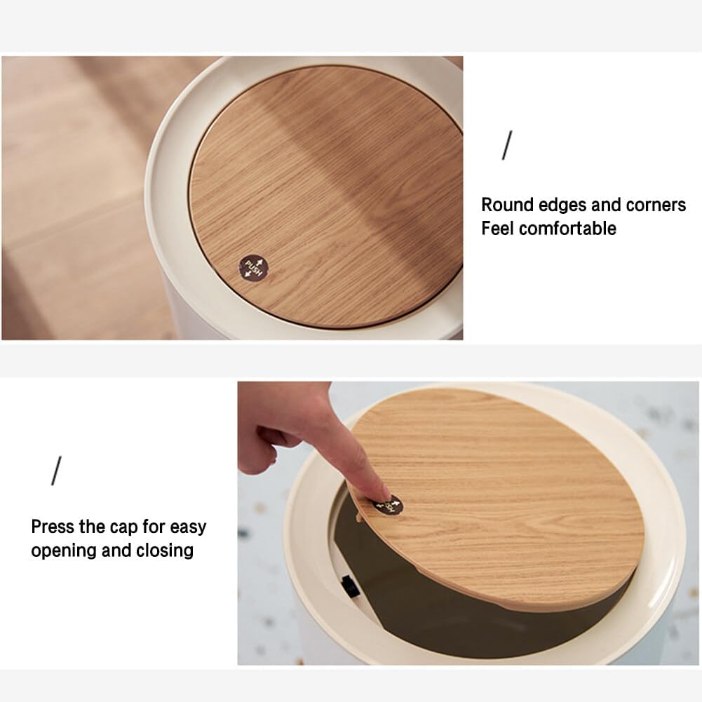 تصميم عملي: تتميز سلة المهملات بتصميم أرجل عالية والجزء السفلي ثابت دون اهتزاز. تم تصميم سطح الغطاء بحبيبات خشبية صناعية، ويحتوي الجزء الداخلي على حلقة ضغط، والتي يمكن أن تغطي كيس القمامة دون التأثير على مظهر سلة المهملات.