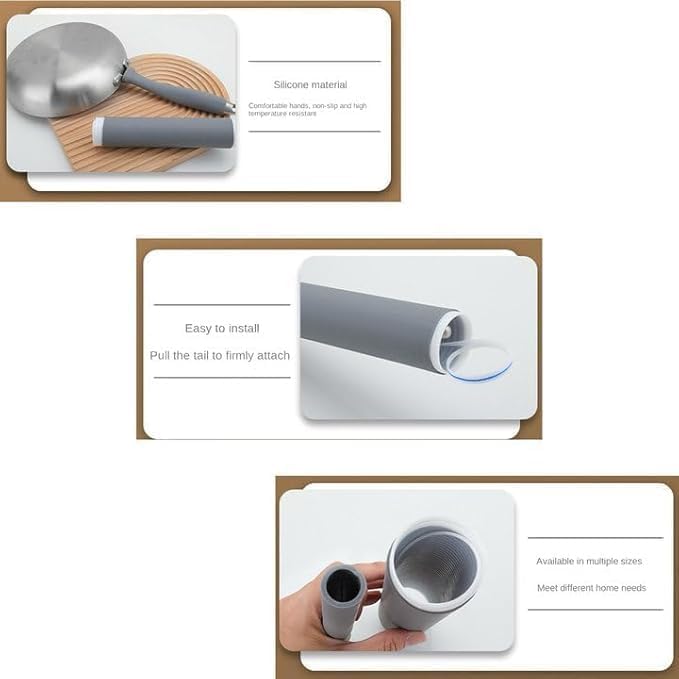 【Pot Silicone Anti-Scald Handle - Automatic Pull-Out Design】The automatic pull-out design makes this gray silicone handle cover widely used for various pots and pans, and even everything that needs to be wrapped. Place the handle cover in the appropriate position of the handle, and then gently pull the pull ring at the end. The silicone pot handle cover protective cover will automatically shrink to fit various irregular-shaped handles, providing comprehensive protection.
