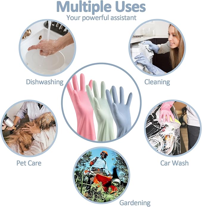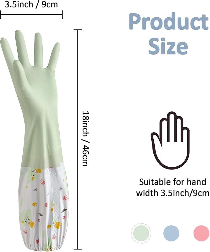 【Size and Color】 You will receive 3 pairs of kitchen gloves, the size of each pair is: 18inch/46cm, suitable for hand width 3.5inch/9cm, the colors of the three pairs of gloves are: pink, green, blue, bright colors can distinguish applications well, and can also add bright colors to life.