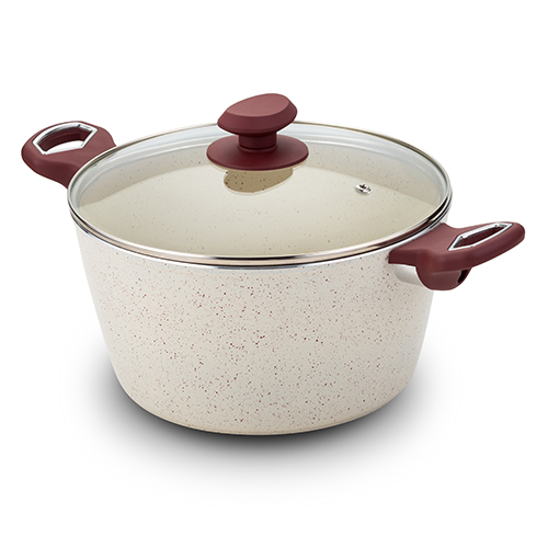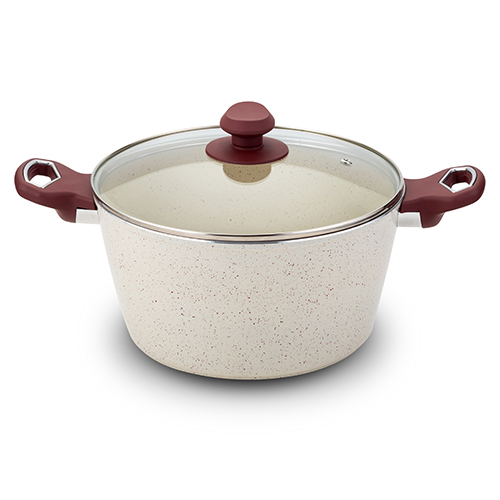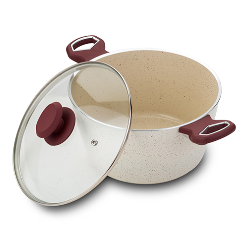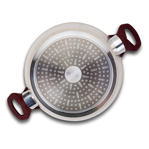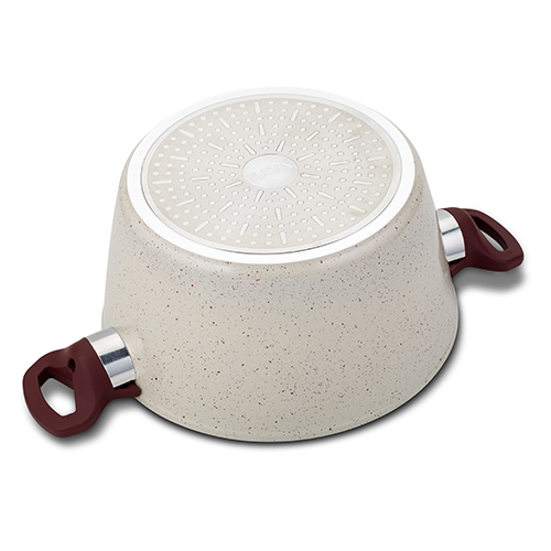 الطبقات الثلاث وجودة طلاء السيراميك على الأسطح الداخلية والخارجية عاملان مهمان جدًا لإطالة عمر المقلاة. يُكمل تشطيب الحافة العلوية والمقبض الناعم خصائص المتانة والجودة العالية لأواني الطهي.