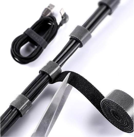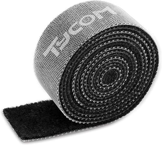 Tycom cable tidy management, fastening tape sticky strips hook loop reusable and flexible wire ties cable organizer for computer, tv, power and other cables - black 5meter