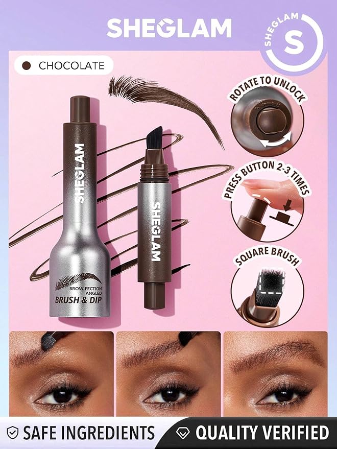 SHE GLAM Brow-Fection Angled Brush & Dip - CHOCOLATE Hair-Like Strokes Liquid Eyebrow Gel Pen Easy To Color Long Lasting Quick Drying Natural Shaping Outlining Filling Eyebrow Makeup,1.2 ml