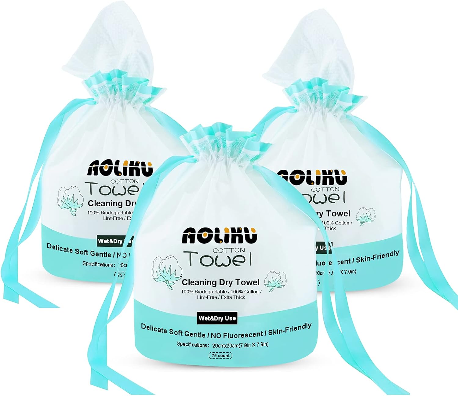 Disposable Face Towel-75 Counts Disposable Cleansing Dry Face Towel,100% Cotton Extra Thick & Soft Facial Tissue,Non-Woven Fabric Perfect for Sensitive Skin Makeup Facial Soft Pads,Biodegradable Disposable Beauty Towels 【100% Cotton Material】: Our Disposable Face Towel is made of 100% cotton fiber,Lint-free,Biodegradable,Non fluorescent.Perfect for Normal / Oily / Sensitive skin.