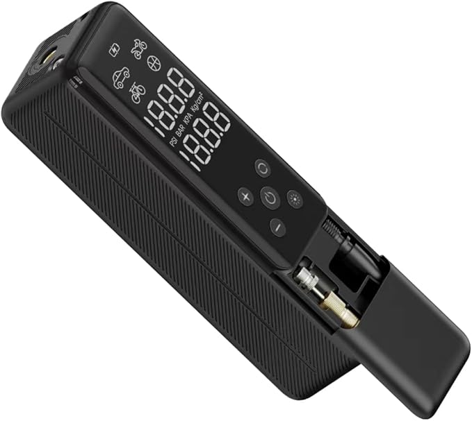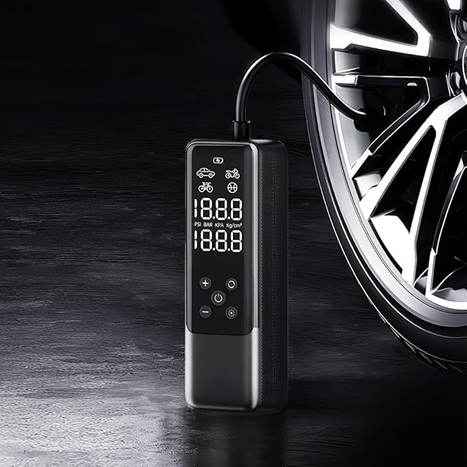 • Connect the air nozzle to automatically detect the correct and error-free tire pressure, which will automatically stop when fully charged, so you don't need to keep an eye on the tire pressure gauge.